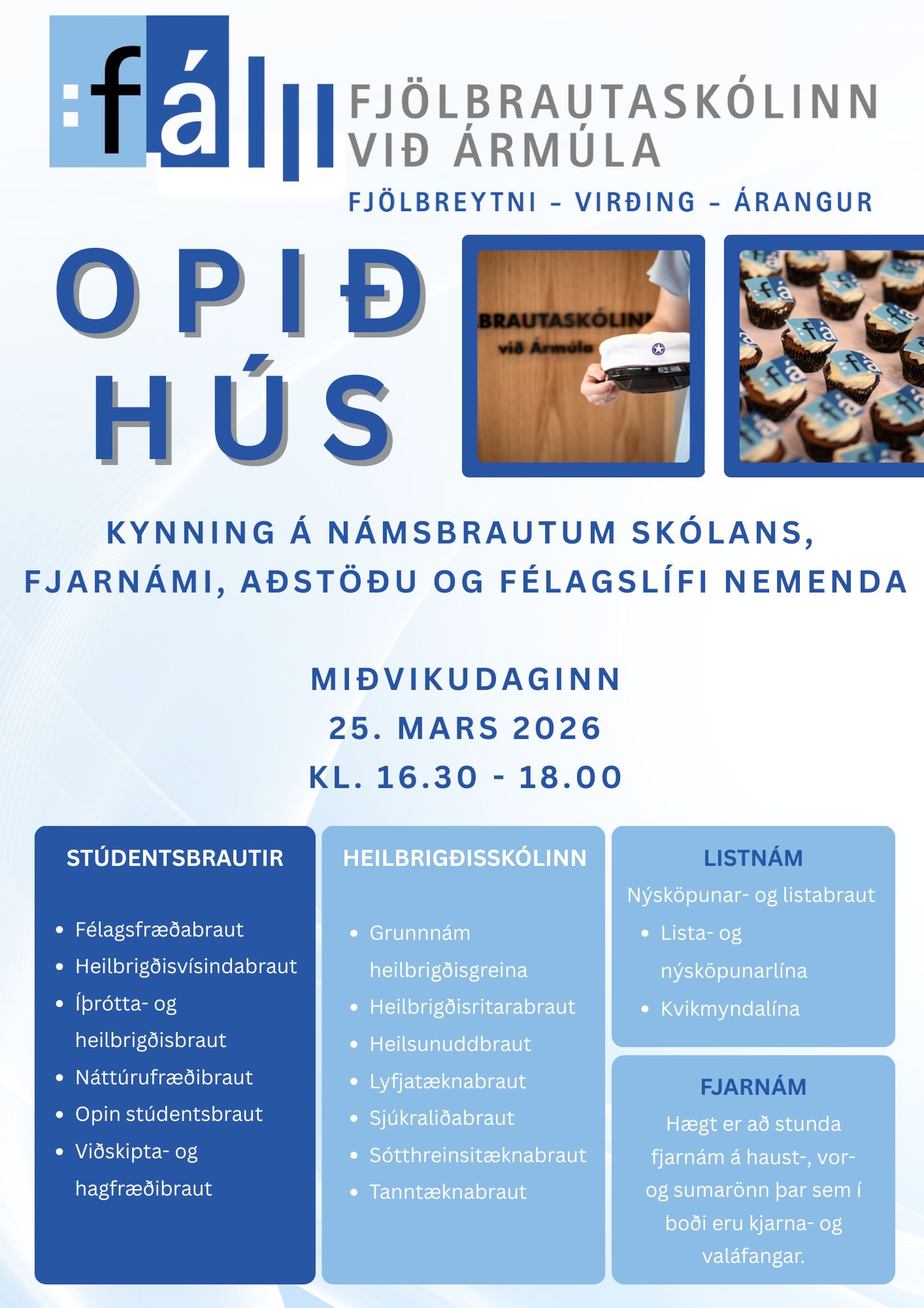 Kynning verður á námsbrautum, aðstöðu og félagslífi skólans.